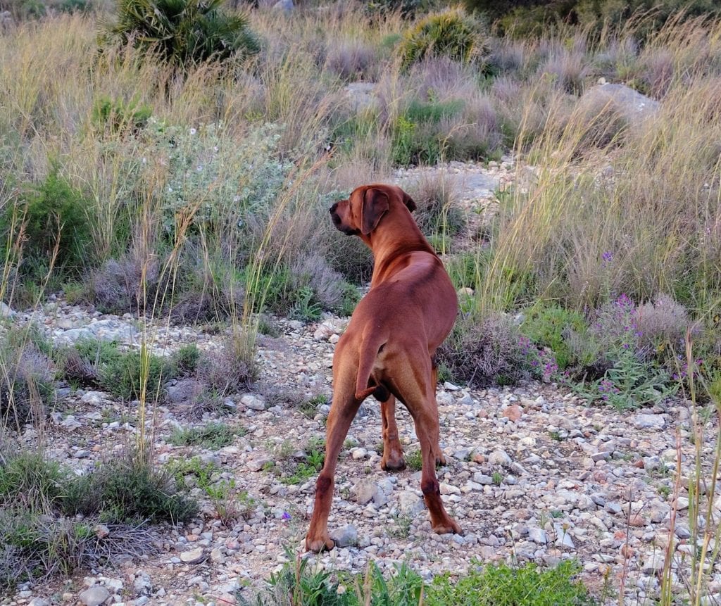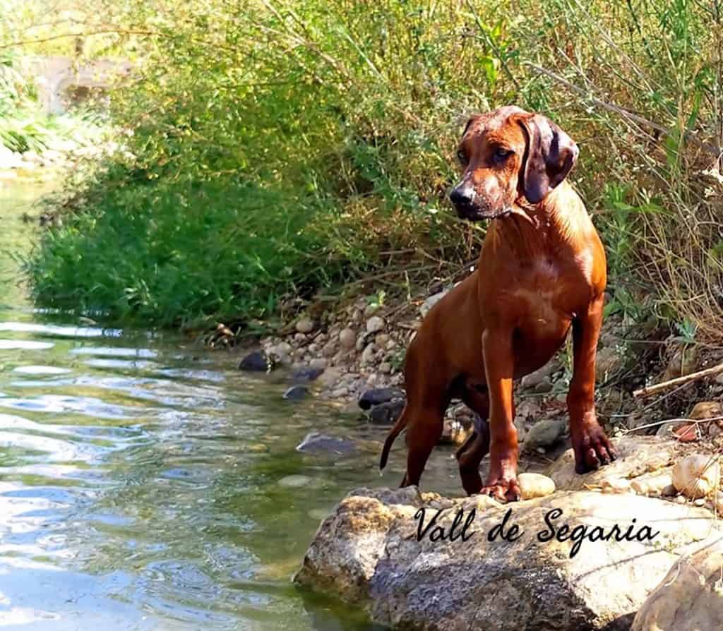 En nuestro caso, la montaña de Segaria, que tenemos muy cerca, es un lugar perfecto para disfrutar con los perros. Y no solo la montaña: también tenemos el río Girona, donde a nuestros Rhodesian Ridgeback les encanta bañarse y jugar en el agua